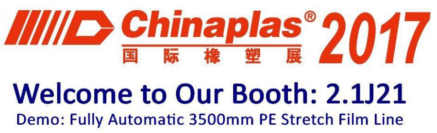 Asia first, the world's second international rubber and plastics exhibition CHINAPLAS 2017, with China's plastics and rubber industry for more than 30 years. The current CHINAPLAS will be held at 16 -19 May and return to Guangzhou Pazhou China Import and Export Fair Complex, then HB- Machinery will carry the 3500mm latest high-speed four-shaft winding PE stretch film line to attend.